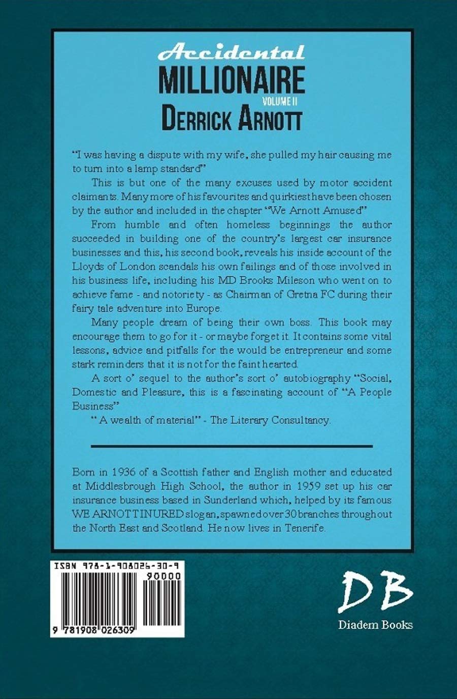You will discover in “Accidental Millionaire” how the author overcame obstacles to build one of the country’s leading car insurance businesses. How his disastrous association with Lloyds of London almost ruined him. How little Gretna Football Club was taken from non league obscurity into European glory by one of his company’s directors who manipulated money held in trust to become, reportedly, one of the country’s wealthiest men, only to lead the club to bankruptcy and himself into an early grave.