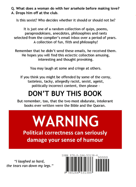 His latest widely acclaimed book "My Inbox - Uncensored" is a compilation of risky and hilarious emails selected from his inbox from 2009 to 2019. It was written in the cause of FREE SPEECH and in defence of the DIRTY JOKE!